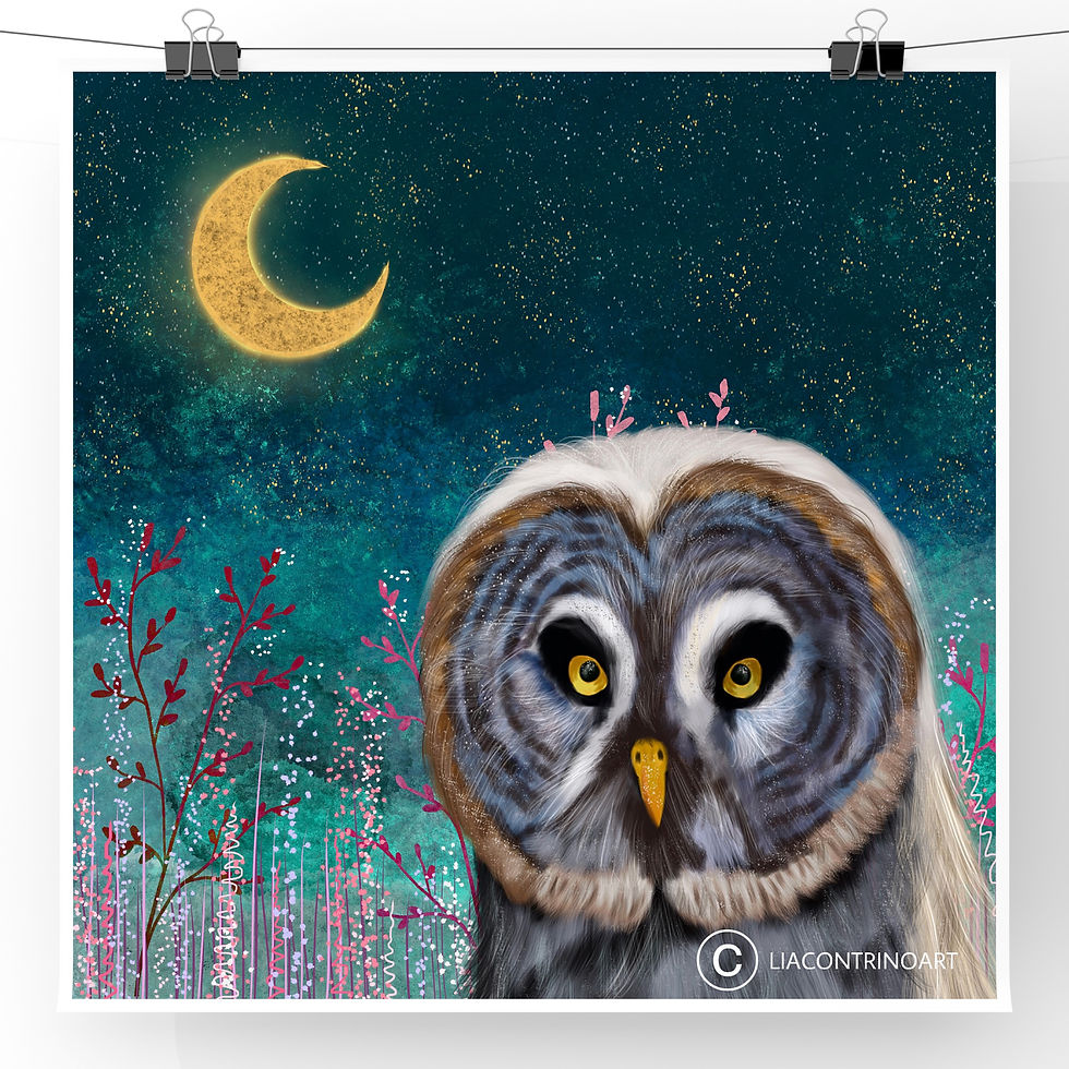Owl Under The Crescent Moon Print